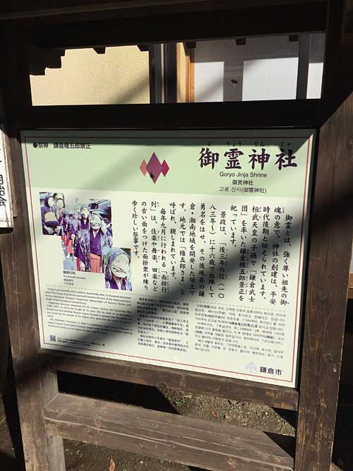 御霊神社は、桓武天皇の子孫で『鎌倉武士団』を率いた鎌倉権五郎景正を祀ってます。また、鎌倉江島七福神の福禄寿でもおなじみの神社です。『最後から二番目の恋』のドラマにも出てくる神社だそうで、平日でも観光の人でにぎわう神社です。