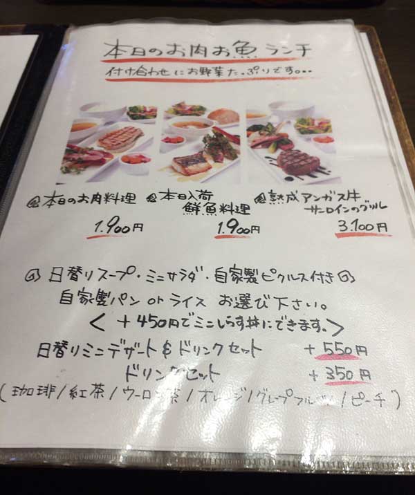 ランチのメニューです