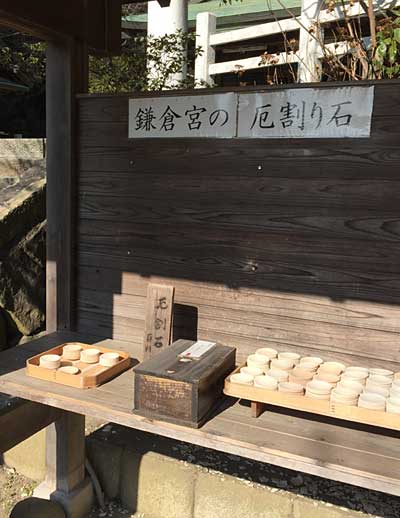この石に叩きつけて割ります。なんか、ご利益ありそう。